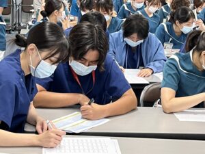 実地指導者と新人さんとペアで看護や問題を考え、上位にはおやつを獲得しました