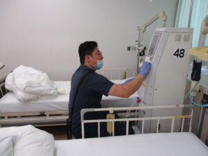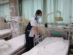透析は、看護師12名と臨床工学技士数名(日によって違うため)、ヘルパー2名、クラーク5名で、日々透析業務を行っています!