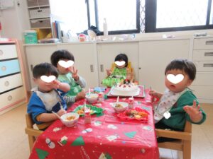 その後のクリスマスパーティではからあげやミートボール、ナポリタンなど…好きな物を沢山おかわりしていた子ども達でした🍗✨