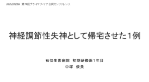 演題名は「神経調節性失神とし帰宅させた一例」です。