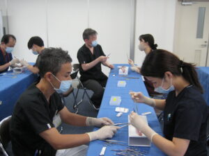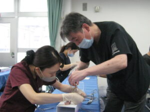 外科の先生方の丁寧なご指導に加え、専攻医の先生も参加され、縫合の基本から“現場で使えるコツ”まで惜しみなく教えてくださいました。